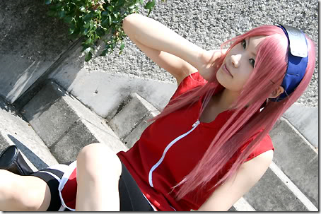 Cute Sakura cosplayer! I do prefer her with long hair too. I'm not sure why she chopped her hair off, but I think it was because of one of their tests in becoming a ninja? Anyway, great cosplaying!